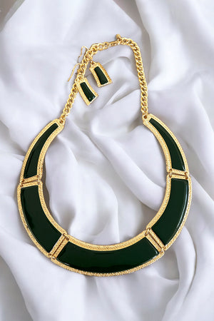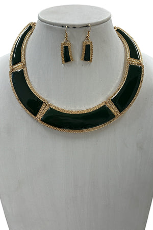 Framed Acrylic Link Bib Necklace Set Approx Length: 15"