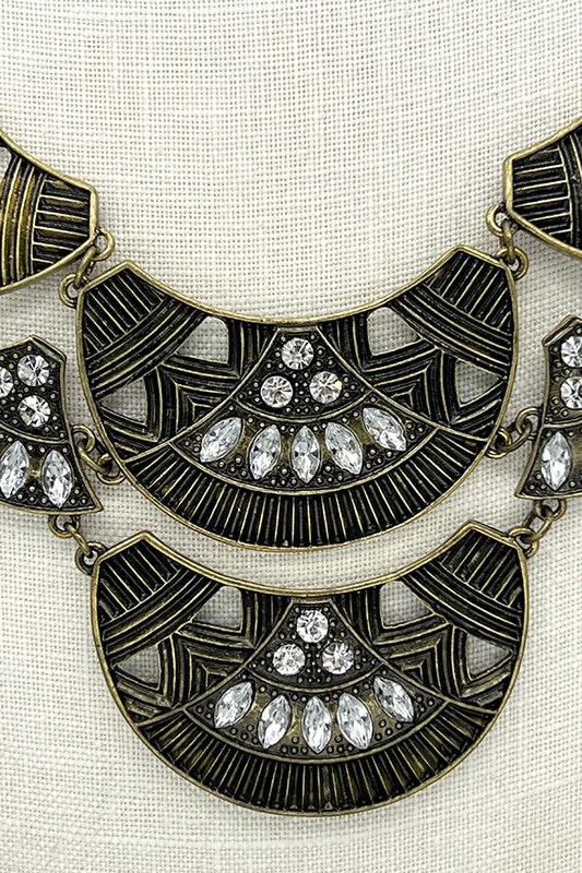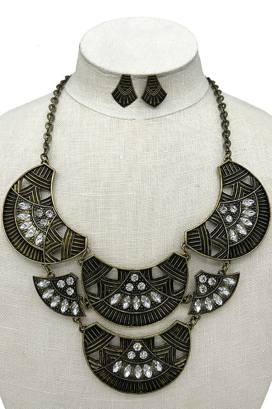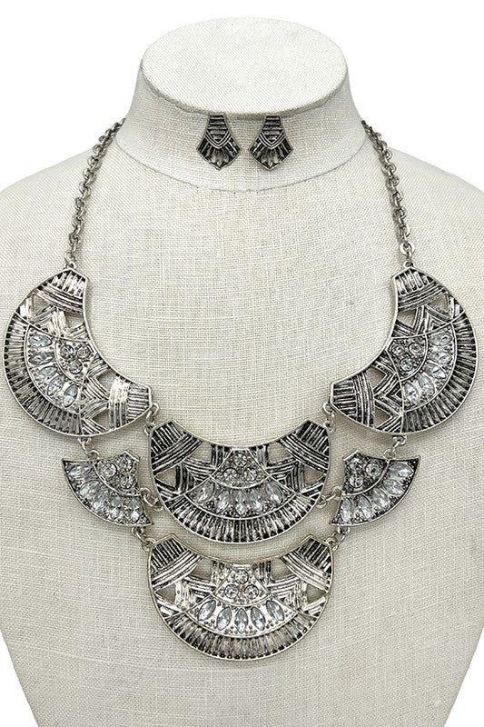 Half Circle Link Gem Accent Necklace Set