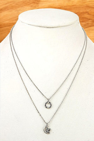 DOUBLE LAYERED ROUND CUT RING HALF MOON OWL ACCENT PENDANT NECKLACE , APPROX LENGTH: 15" 17" EXTENSION: 3", DETACHABLE , 2 SEPARATE CLASP CLOSURE