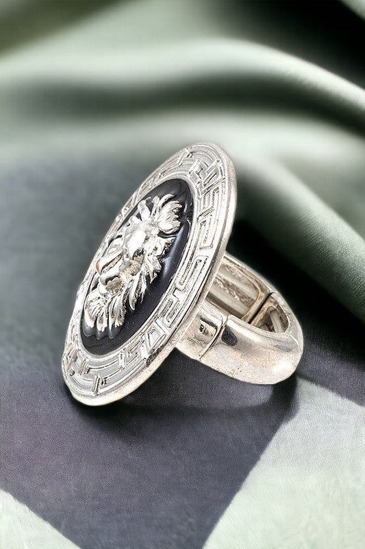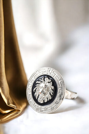 Maze Framed Lion Head Ring