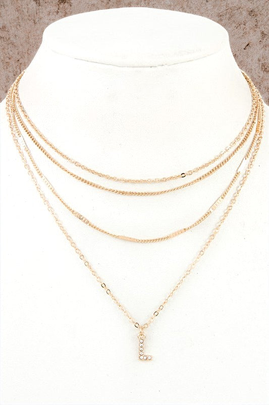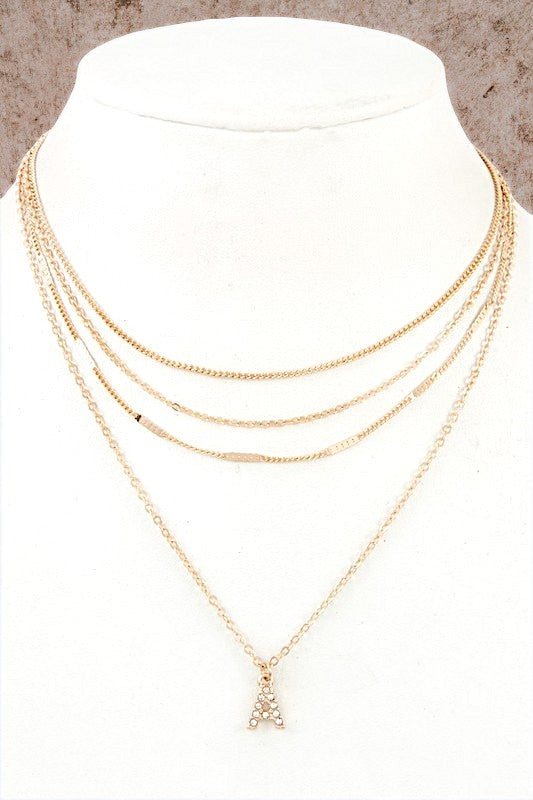 monogram, rhinestone, rhinestone pave, alphabet, layered, chain necklace, necklace set,