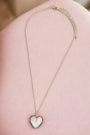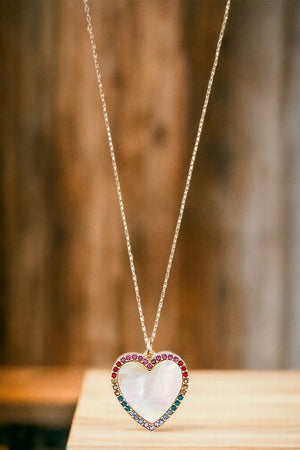 Multi Color Gem Stone Heart Pendant Necklace Approx Length: 16"
