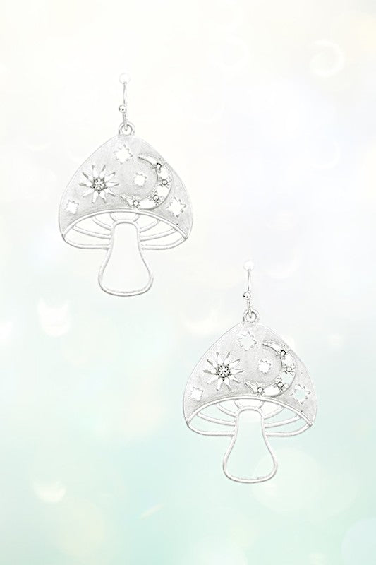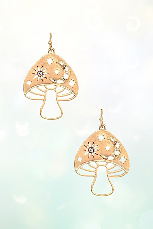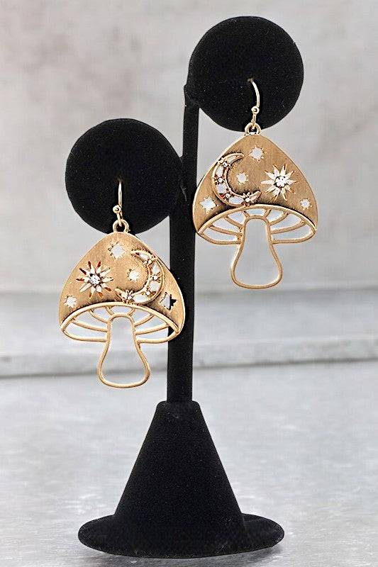 MUSHROOM MOON STAR ACCENT DANGLE EARRING , APPROX SIZE: 1 1/2"