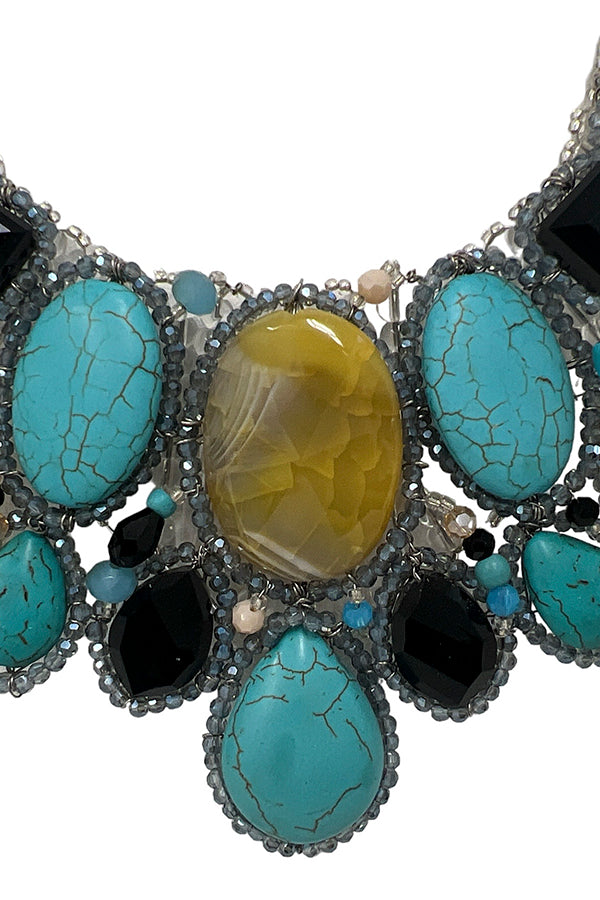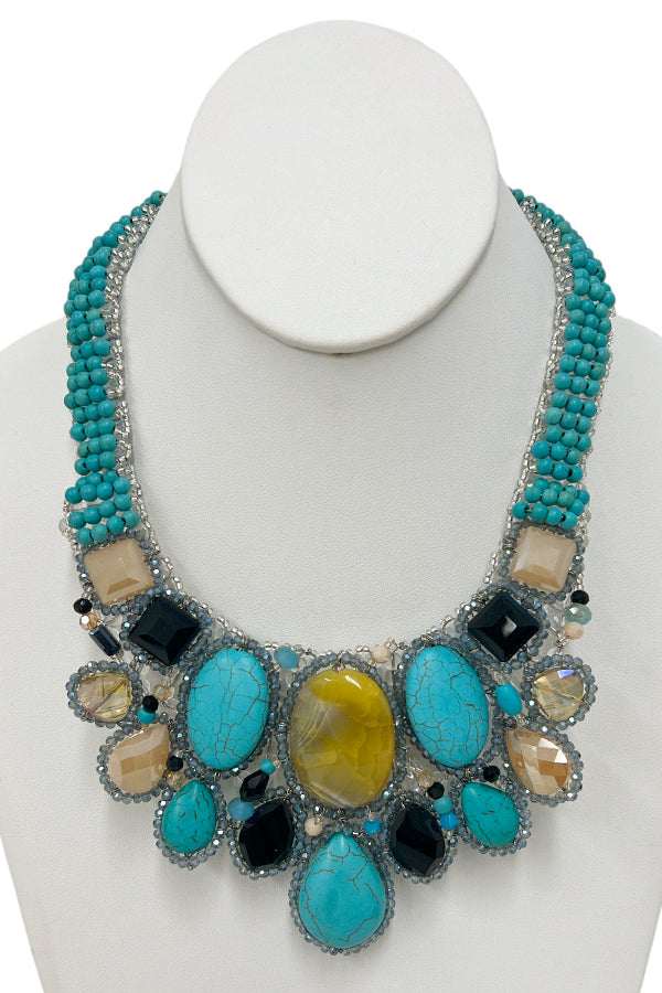 Natural Stone Stack Bib Necklace Set Approx Length: 15"