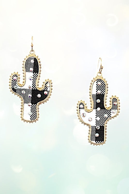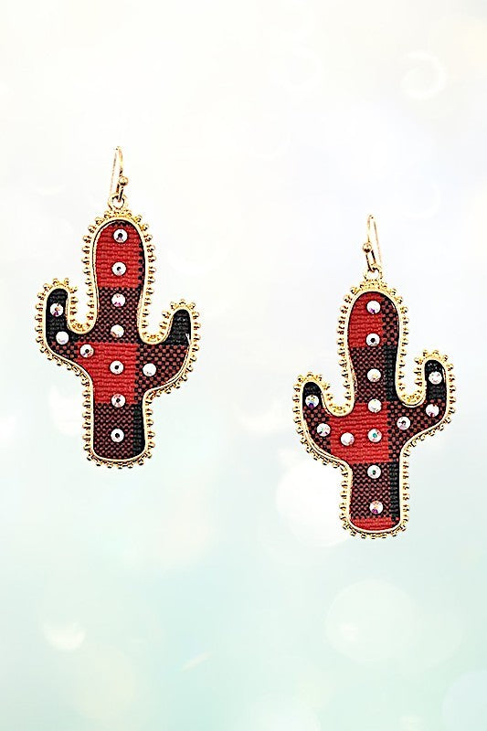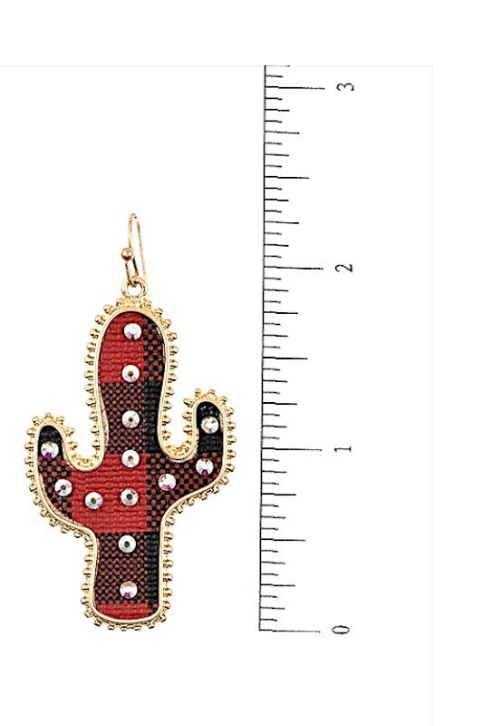 cactus, western, cowgirl, plaid, plaid print, gem accent, dangle,