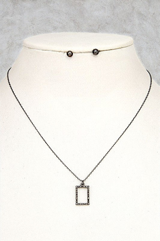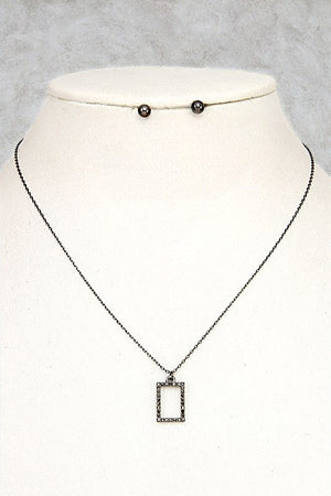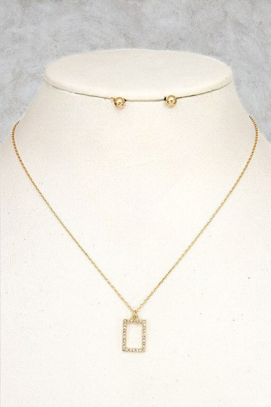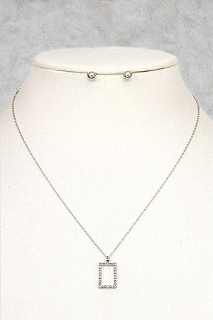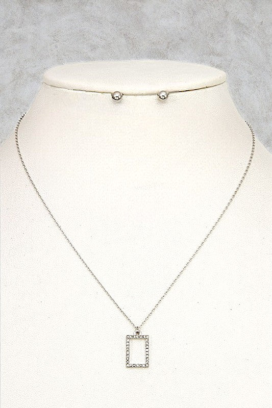 necklace earring set, rectangle, rhinestone, rhinestone pave, ball post, pendant,