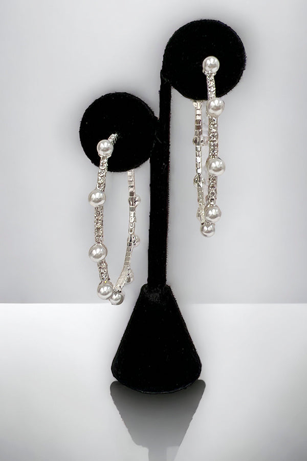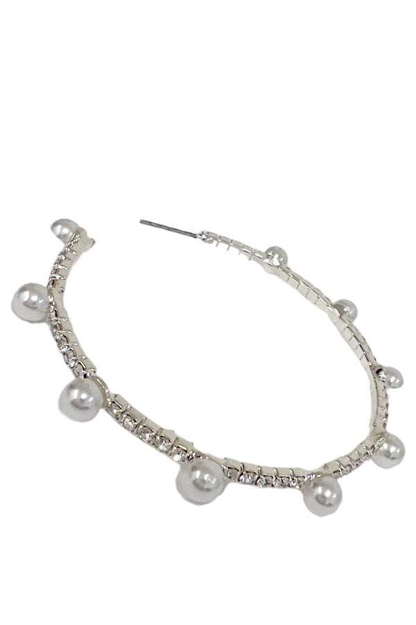 Rhinestone Pearl Accent Semi Hoop Earring
