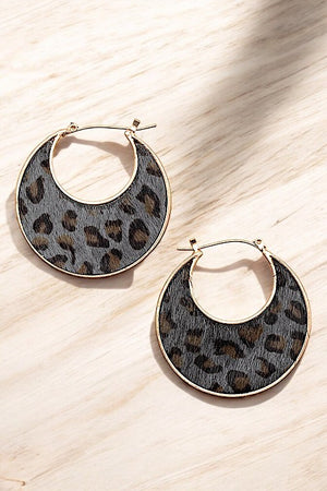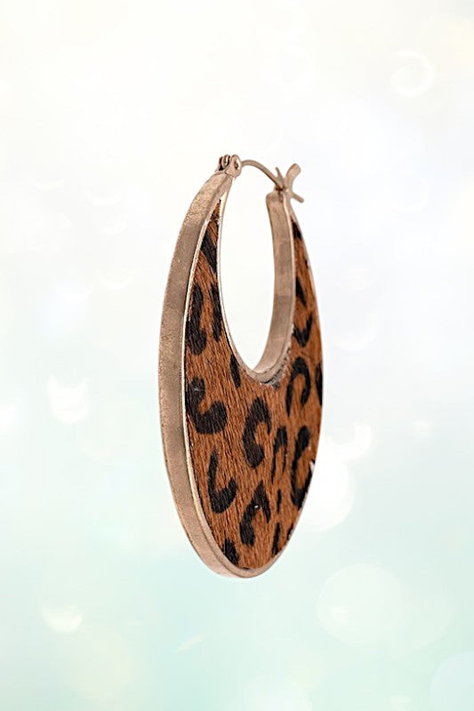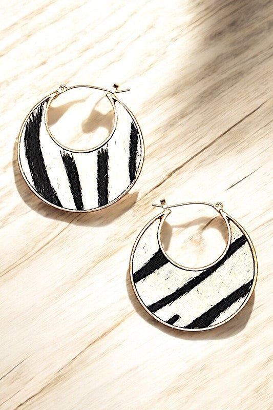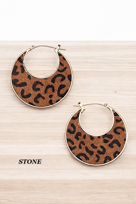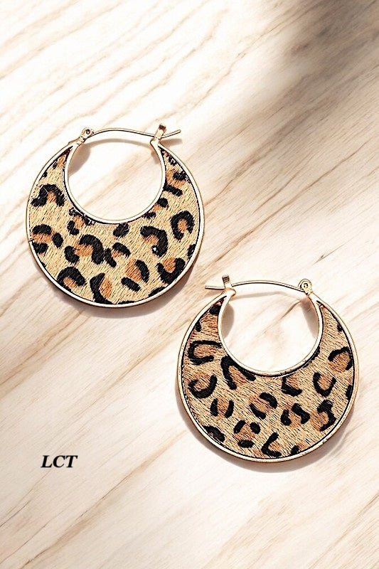 ROUND ANIMAL PRINT FLAT HOOP EARRING, GENUINE LEATHER , APPROX SIZE: 1 3/4"