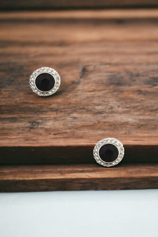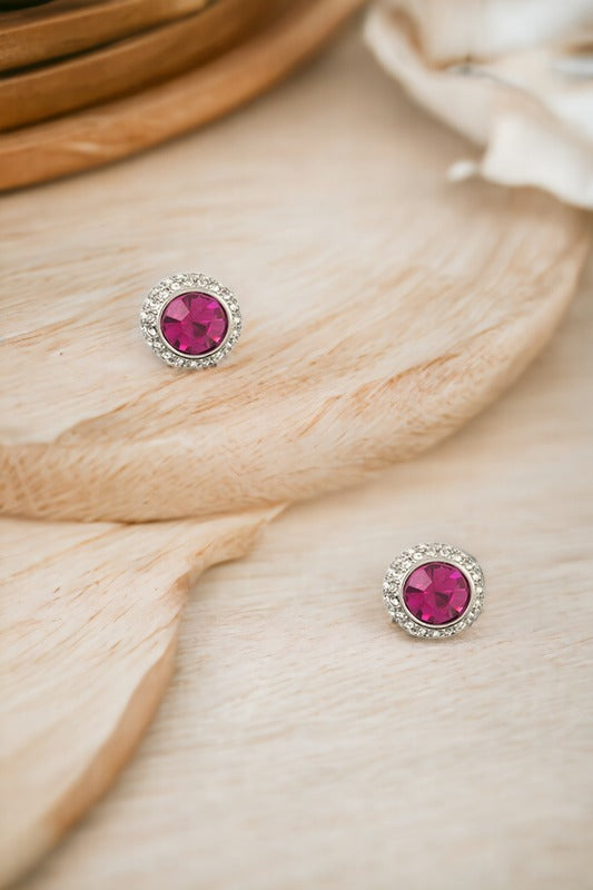 Round Gem Framed Post Earring