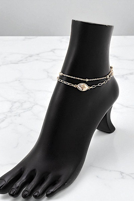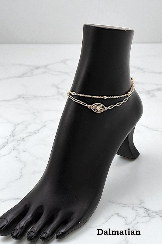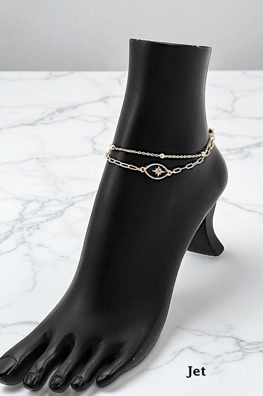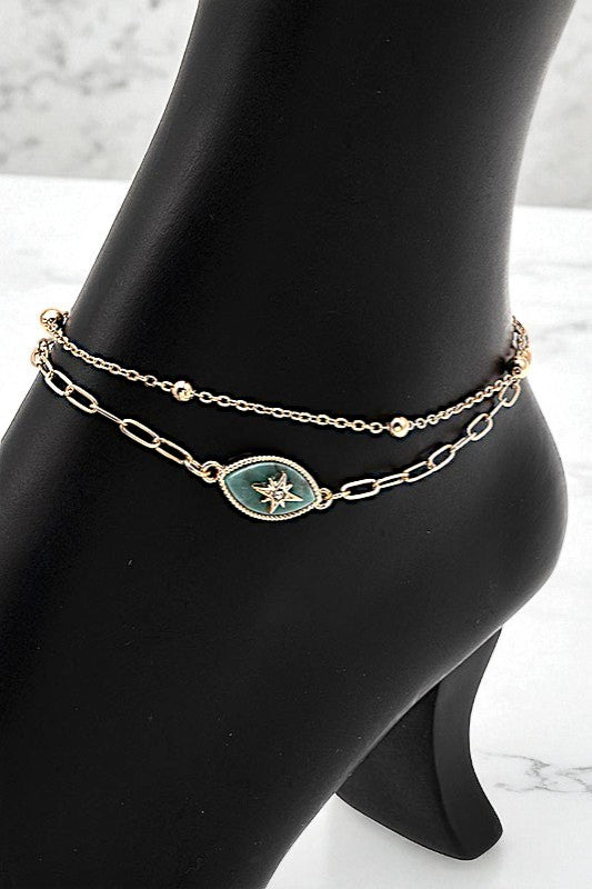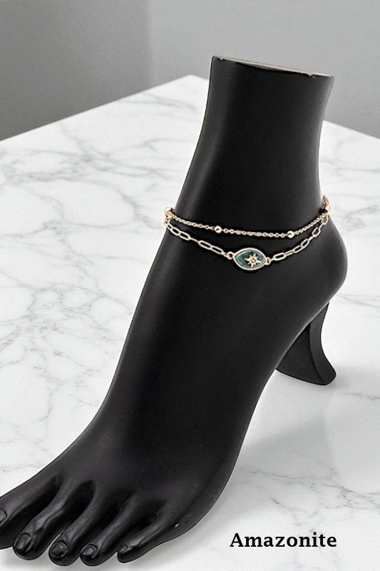SEMI PRECIOUS STAR ACCENT ANKLET SET, 2 SEPARATE CLASP CLOSURE, APPROX LENGTH: 9"