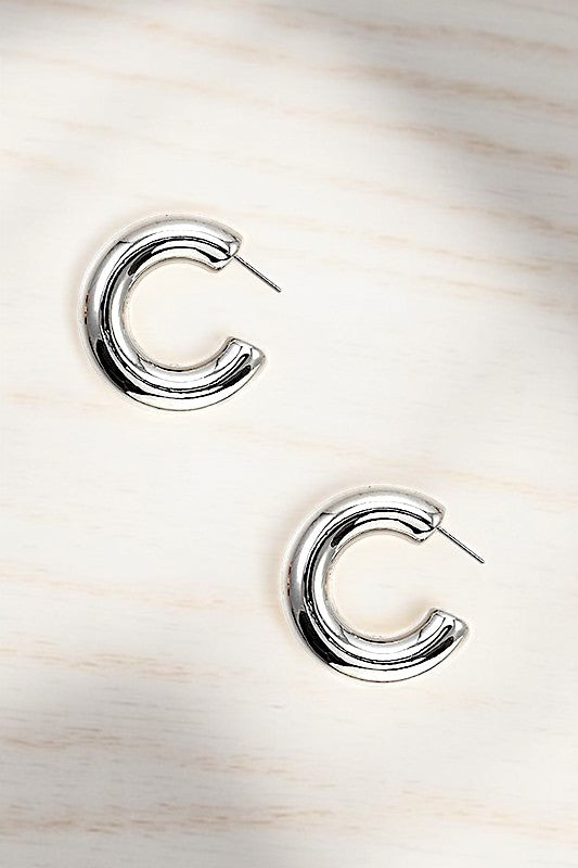 SMALL SEMI TUBE HOOP EARRING, APPROX SIZE: 1 1/2"