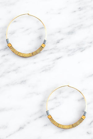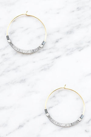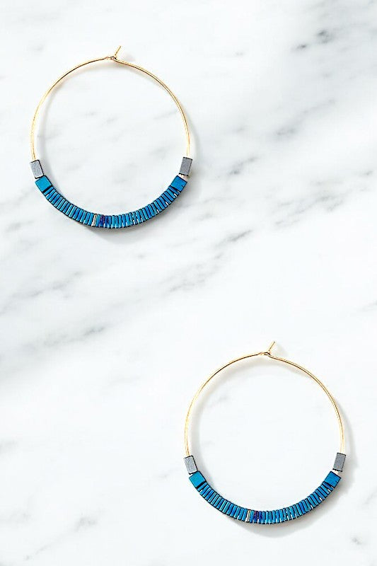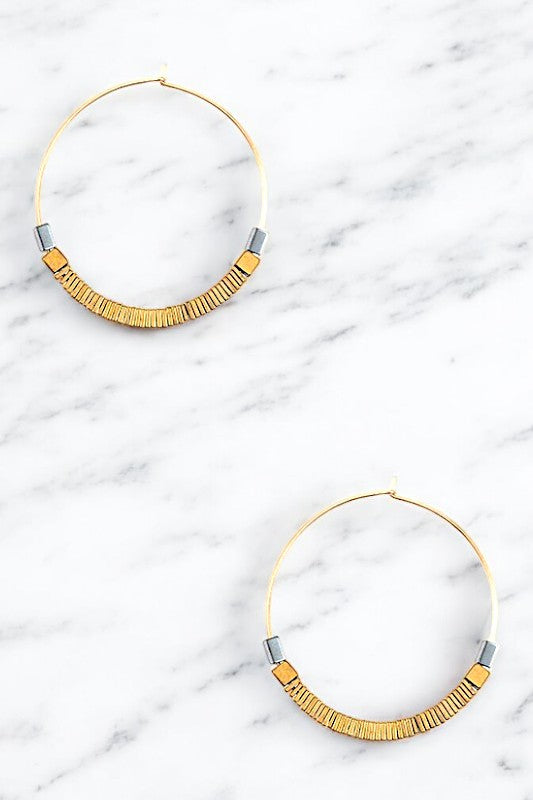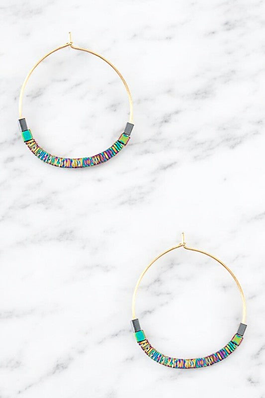 SQUARE BEADS LINK HOOP EARRING, APPROX SIZE: 2"