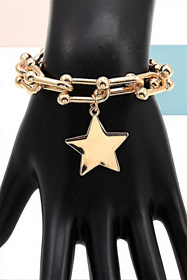 STAR CHARM HARDWEAR CHAIN BRACELET, CLASP CLOSURE