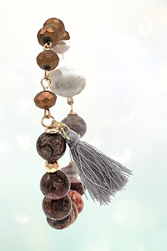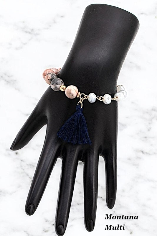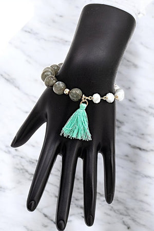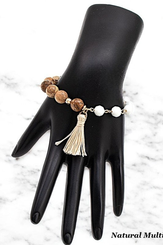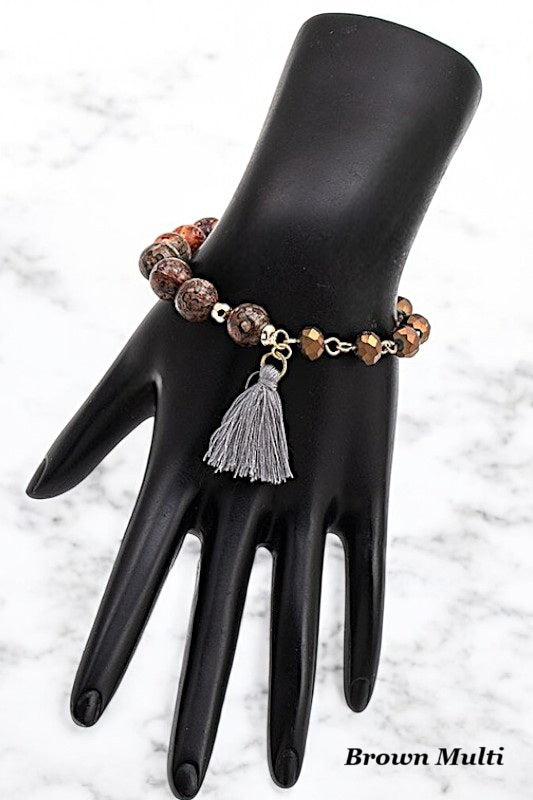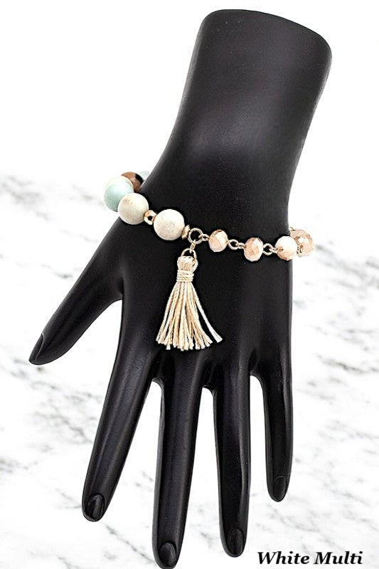 TASSEL BEADED LINK BRACELET, BALL BEAD AND FACETED BEAD LINK BRACELET