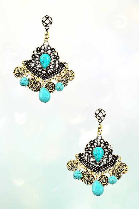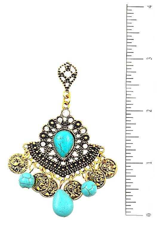TIERED ORNATE GEMSTONE DANGLE EARRING