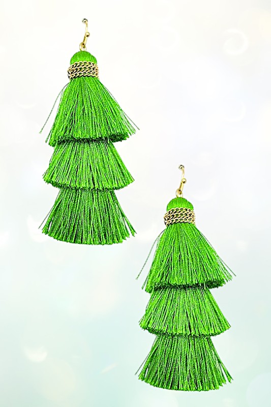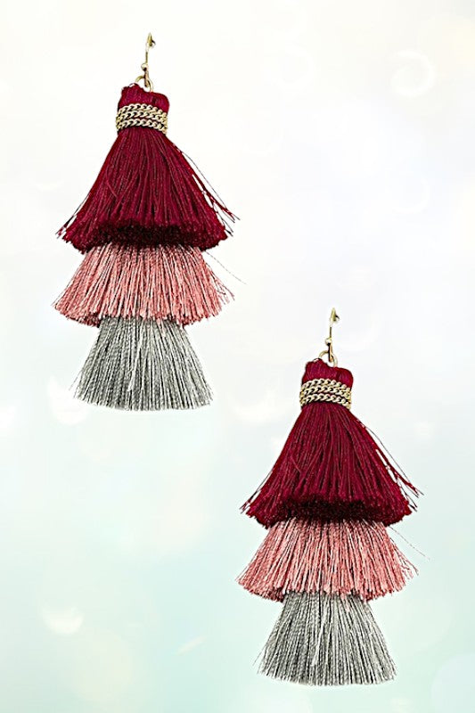 Triple Tassel Link Earring , Approx Size: 3 1/4"