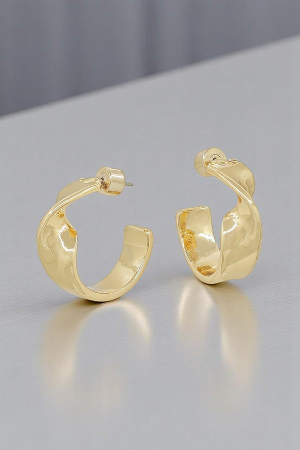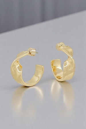 TWIST DETAIL SEMI HOOP EARRING, APPROX SIZE: 1", WATER RESISTANT