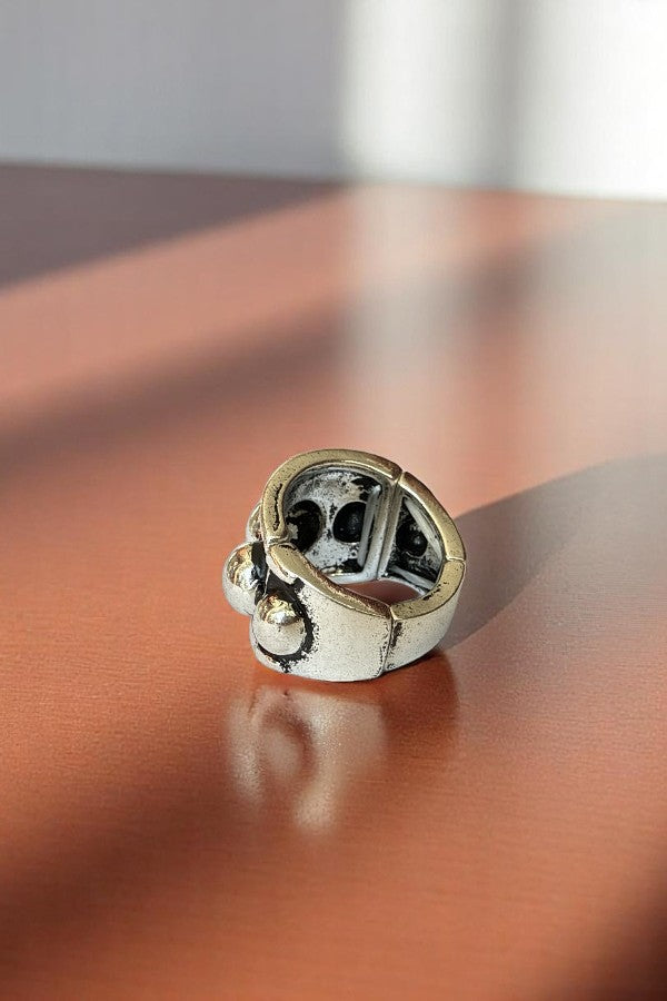 WESTERN ROUND BUBBLE TEXTURED STRETCH RING, APPROX LENGTH TOP TO BUTTOM: 3/4", ONE SIZE FITS ALL, COMFORTABLE WEAR
