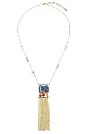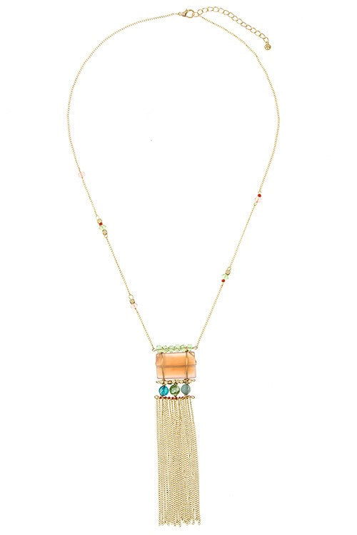 Wrapped Stone Pendant Tassel Chain Long Necklace